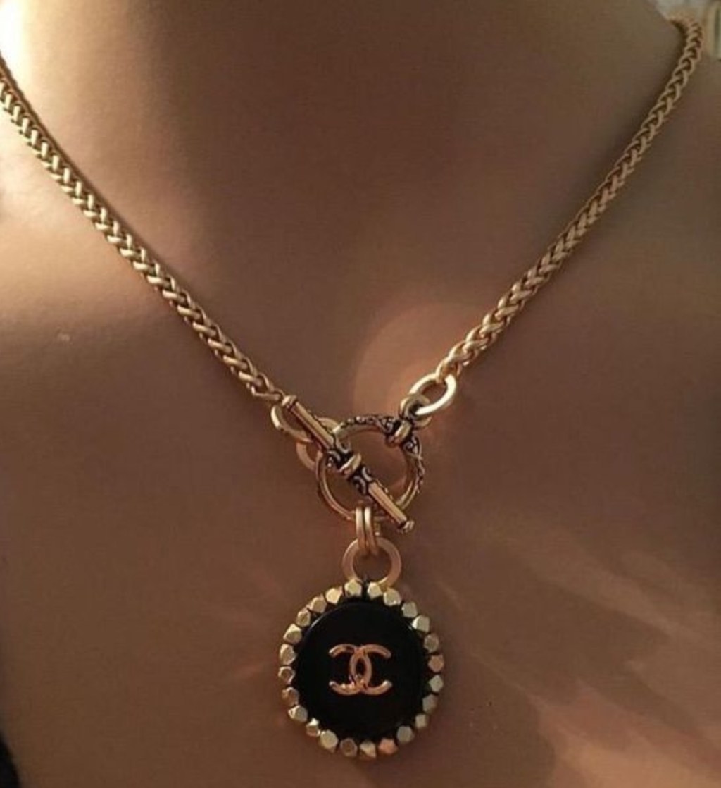 Knowing this look in corperates dark hues the jewelry I wanted to give both bold and tasteful. When thinking of my bolder piece I added GCD chocker I had been waiting to use, the thick Aurelie Biermann bracelet featuring a black Onyx stone. Onyx stone are known for according to Healing Crystal “absorb negative energy, and helps to prevent the drain of personal energy.” The meaning of this stone goes to the engry of powerful and free in fashion. The tastful pieces were the Foundrae gold earring, Cult Gaia navy blue hoops, and Rolex with the pink diamonds and cat framed Versace.
