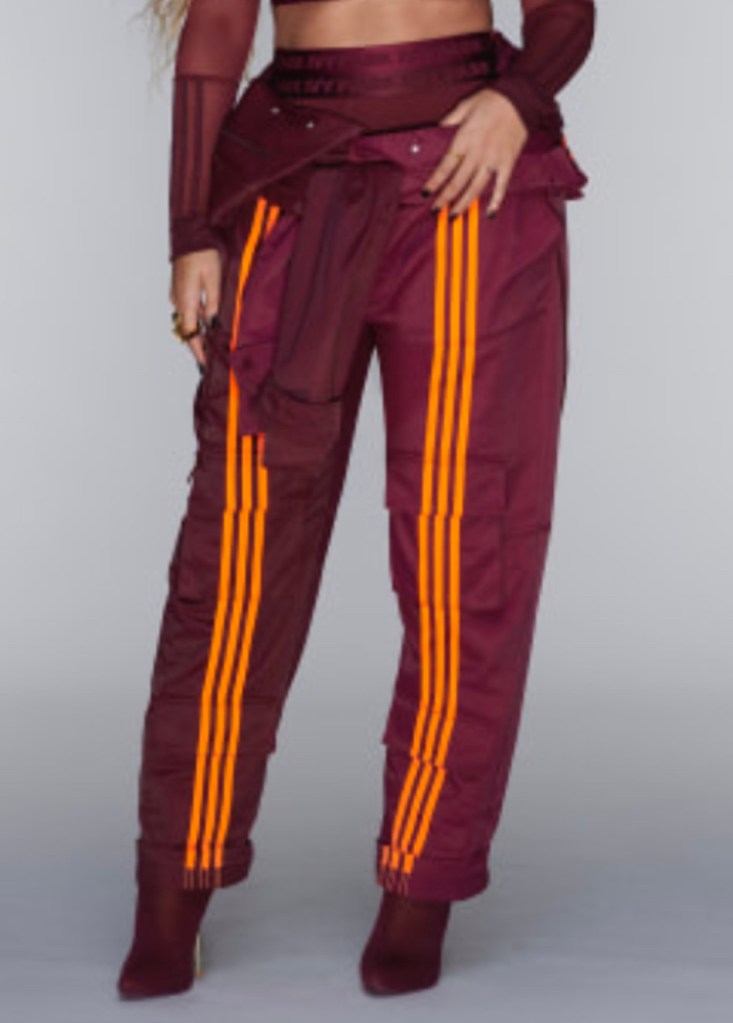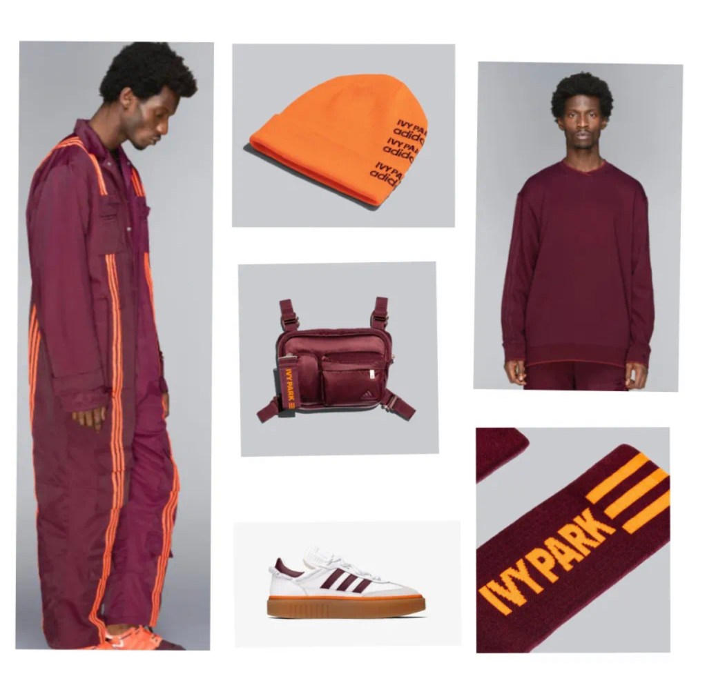 I started this look with my favorite pieces from the collection the jumpsuit with the maroon and orange blend. My idea was to wrap the sleeves around my waist to showcase the sweater and harness bag. Then using the orange beanie as that one bold accessory. The final touch for the footwear was to add the logo socks and super sleek 72. After going through the Ivy Park website and watching the video several times . I notice there were some pieces missing such as the jewelry, and sock pump heel. Creating this men’s wear look was important because I haven’t seen as many looks for men from this unisex collection Ivy Park.