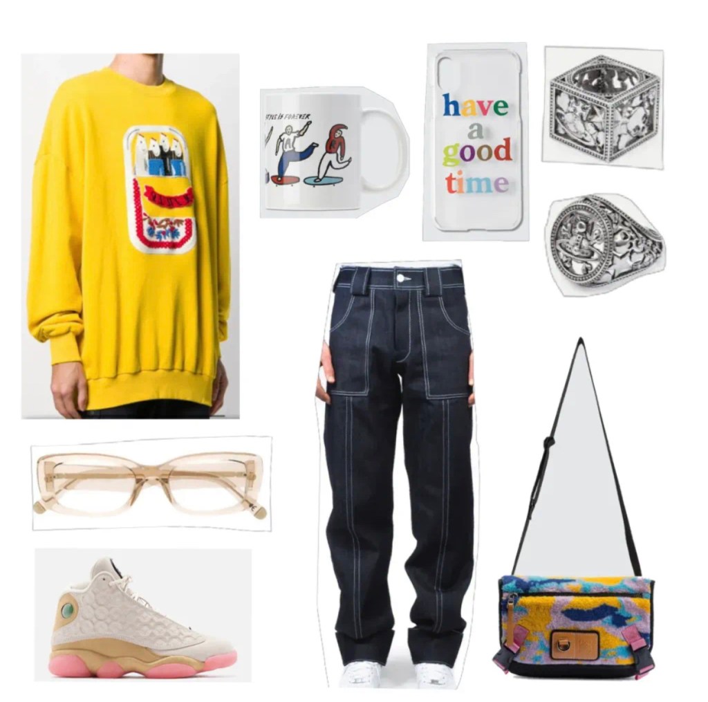 Bright colors, & soft textures are essential let’s start with the fun Henrik Vibskov floral packaged sardine sweater. Paired with the light blue trims and dark oversized denim from Republique Joseph. Since this is a different collection I added a different type of shoe , the Nike Air Jordan 13 CY. Even though at home it doesn’t mean you can’t carry a Commé Des Garçons tote and a cup of a coffee in the ‘Style is Forever’ mug from Polar Skate in the morning. While holding my ‘have a good time’ phone case I’m staying positive . An optional fashion choice of glasses made by Retro Super Future glasses coupled with Vivienne Westwood silver rings noting ‘quintessential symbols’. Warm, cozy and everything in between the best feeling to me is waking up Corona free & watching the sun rise .