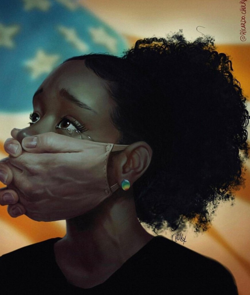 This painting from @richardo.chunky represents the silence of the black community in the rise for change for the Black Lives Matter Movement.