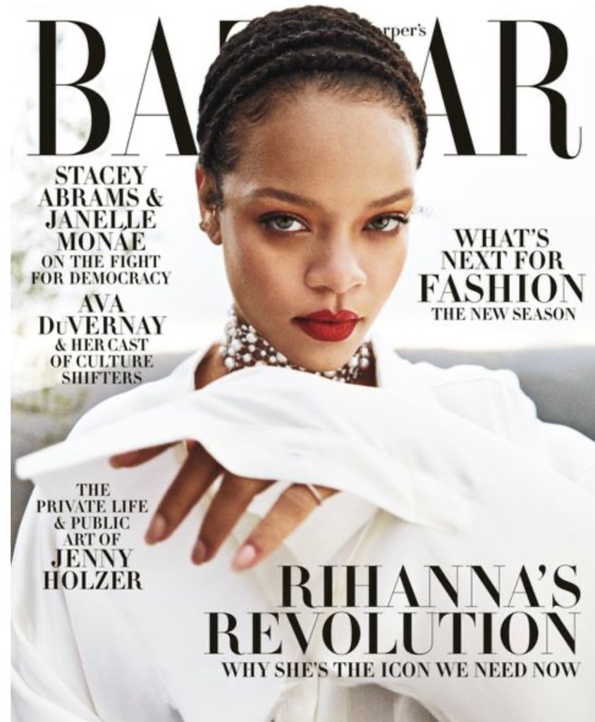 When I first saw the cover I was stunned. Since I was a little girl hearing the Good Girl Gone Bad album, I’ve always loved Rihanna. Kahlana Barfield wrote the article starting off with her first experience meeting Robyn Rihanna Fenty in 2007 of Harpers Bazaar . A few years later she graced the cover of August 2012 Great Style Issue. The 2020 Rihanna Revolution article discussed Fenty Skin from Fenty Beauty and her brand as a whole. The Table of Four explores the success & evolution of artist today .