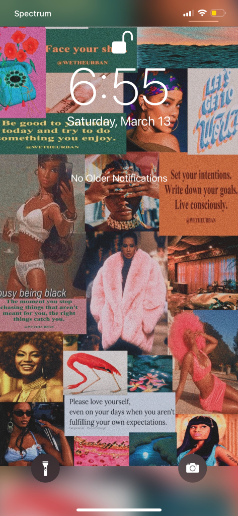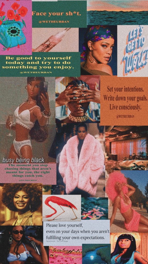 Today I wanted to share the photos that motivate me and have kept me inspired during quarantine. I stumbled across Susan Carolynn ‘s How to make 2021 your BEST YEAR EVER manifesting, goals, vision boards, mindset, habits on YouTube. She showed me the process of using Phonto(free) to move all my visuals and quotes onto one page. For my vision board, I used my favorite black female influencers combined with a 90’s early 2000’s aesthetic for my iPhone wallpaper. To celebrate February was Black History Month and March as Women’s History month here is my vision board that pieces it all together.