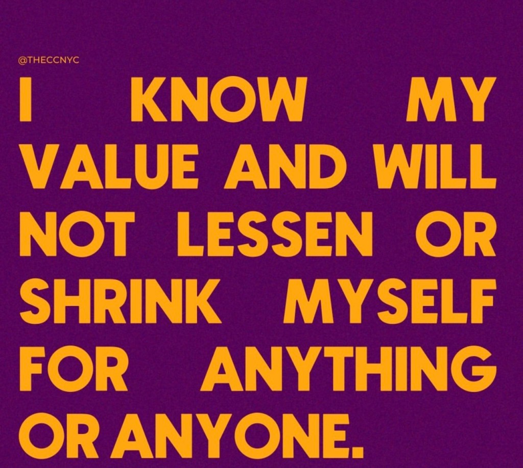 I know my value and will not lessen or shrink myself for anything or anyone.