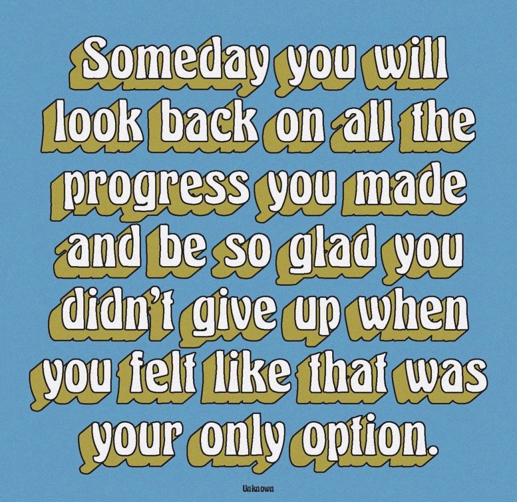 Someday you will look back on all the progress you made and be so glad you didn’t give up when you felt like that was your only option. (@quotesbychristie – Quotes by Christie)