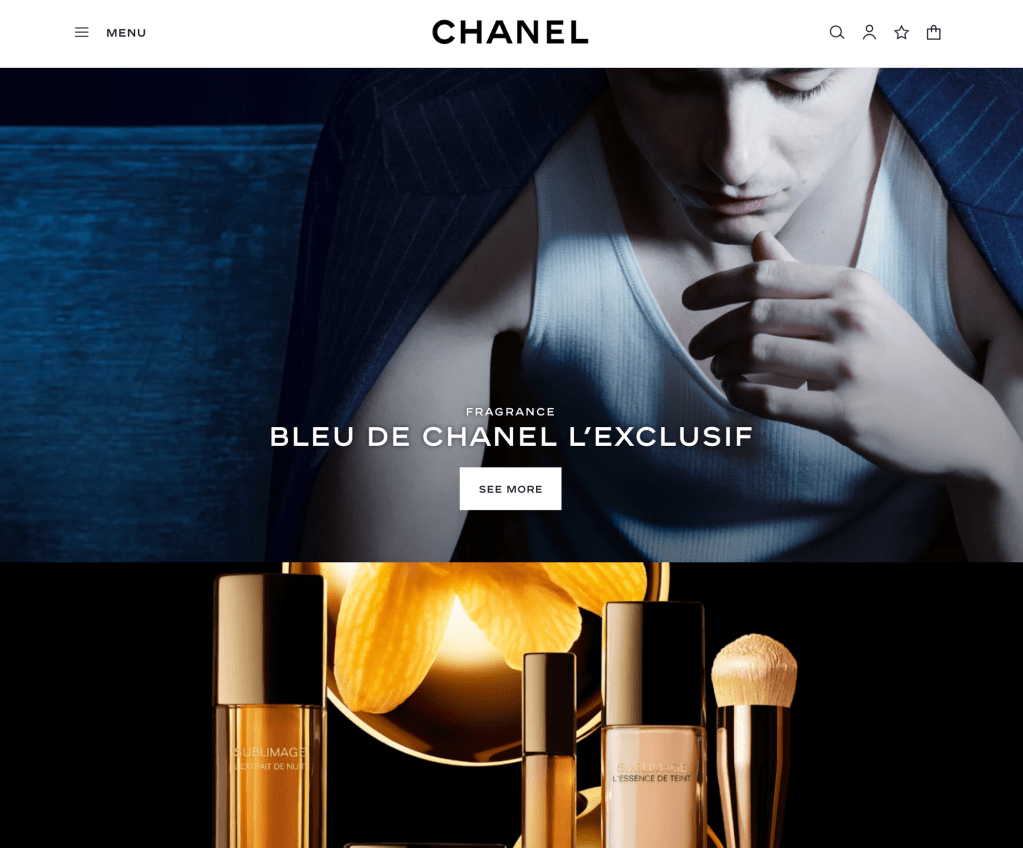She was the ambassador for fragrance and beauty line. The second is Timmothy Chalamet mentioned in the May 2023 to now Bleu de Chanel L’exclsif. This leads to the 3d model of the bottle and quotes take through the journey of the fragrance. As well as a step by step ritual of the full skincare routine.