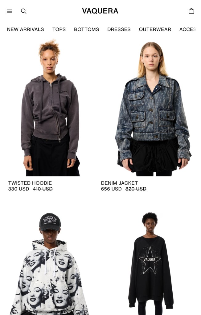 The mix of street pop art , screen printed outfits t shirts and oversized loose jackets to t shirts. Vasquera reminds me of the early 5am mornings in a New Jersey. The pieces are simple but it’s the setting is clearly for someone on the go. The cover is of an old vhs filmed video with models in garments play with mixed categories like bra attached to skirt. More coner will be in the LCL Report .