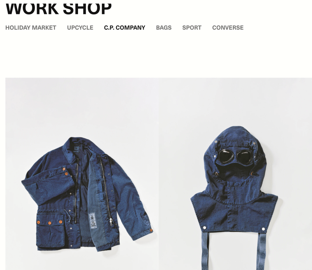 The work shop a tatior market of everyday similatity one block color garments that can. Our legacy brand as well is coonectted to CP cOMPANY known for the Hats and accessories are focused on the denim line. The Upcycle , bags , sport and converse are coffered as ewll in th e bag. A multi verse divsion of a minimalistic style.
