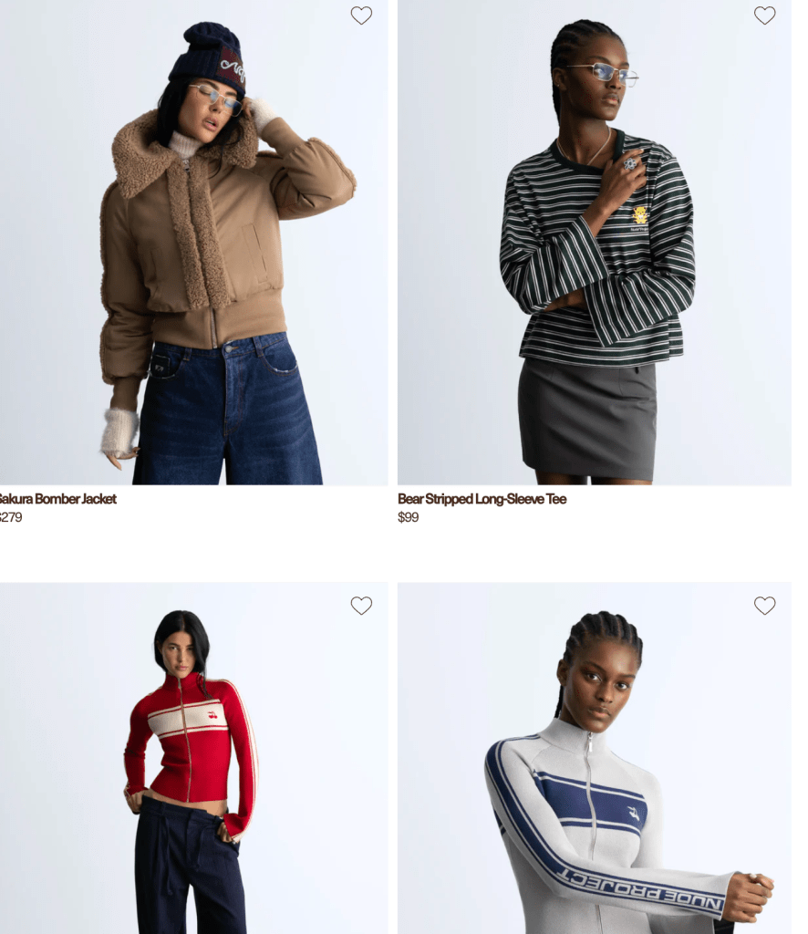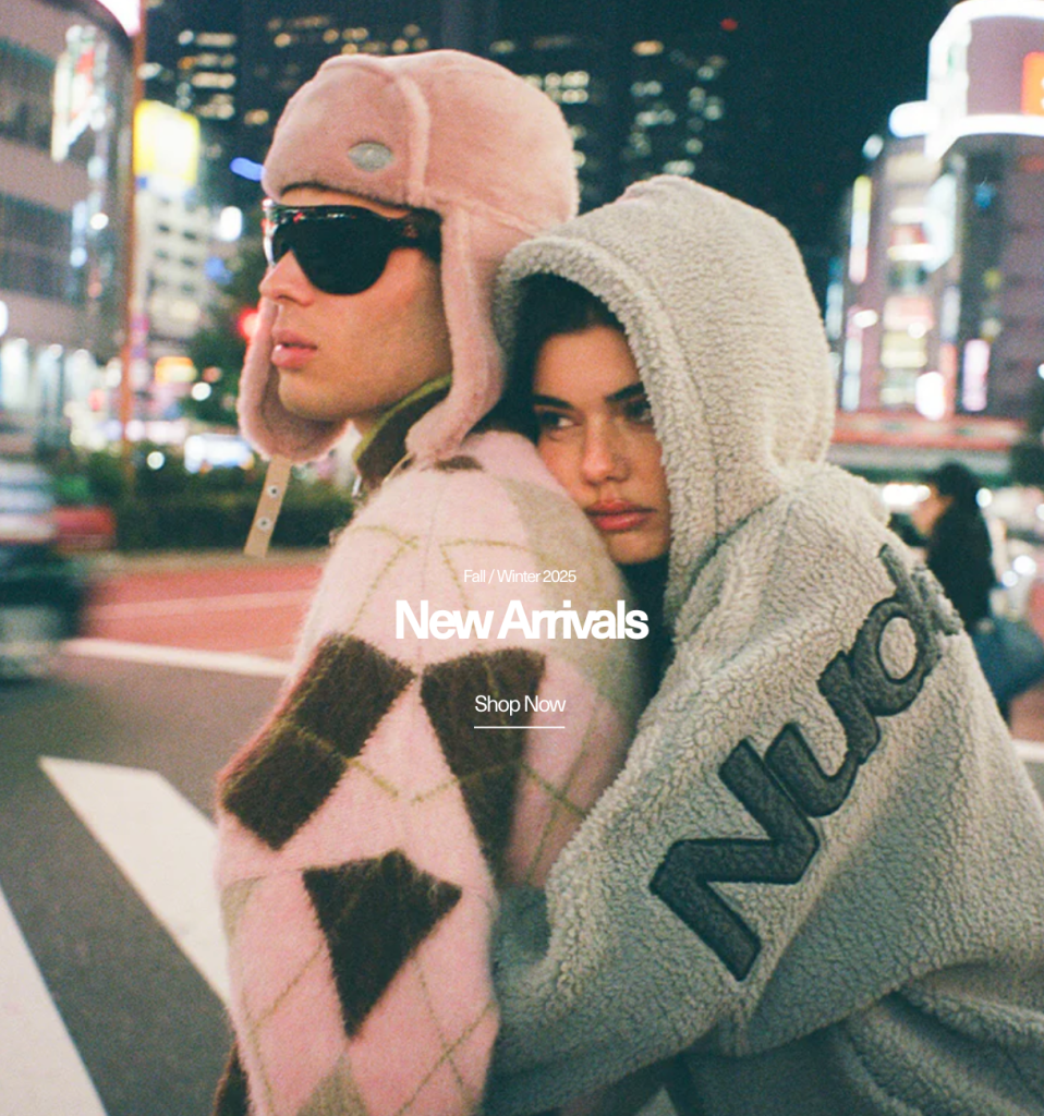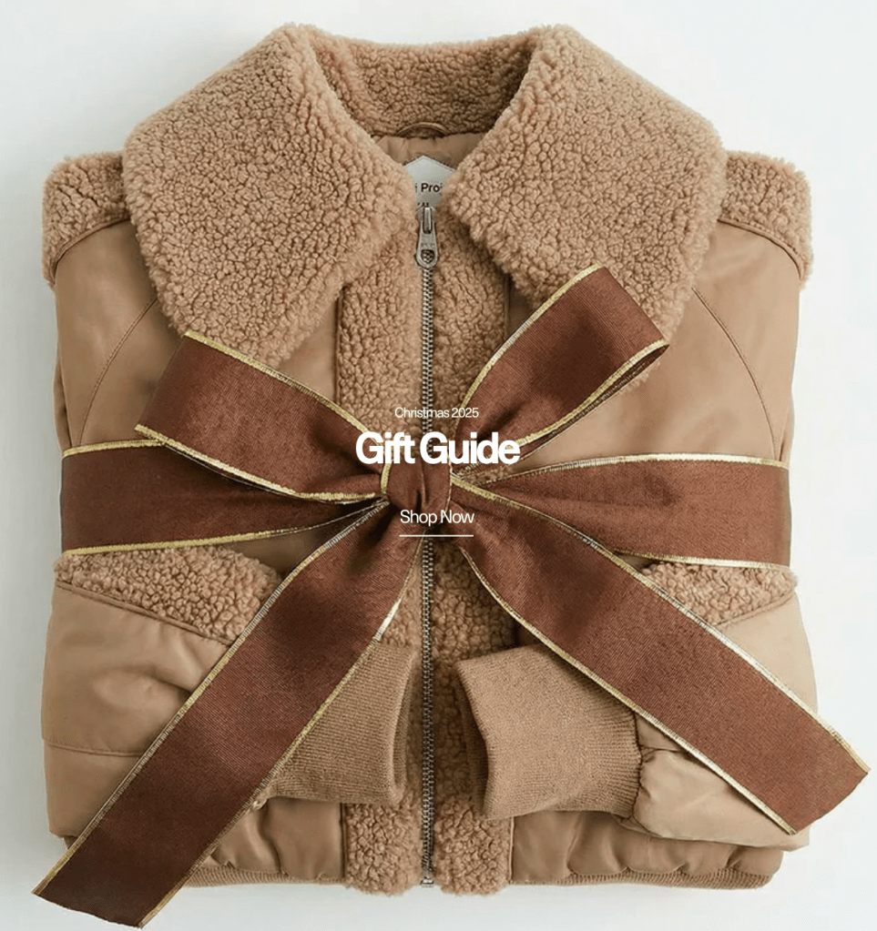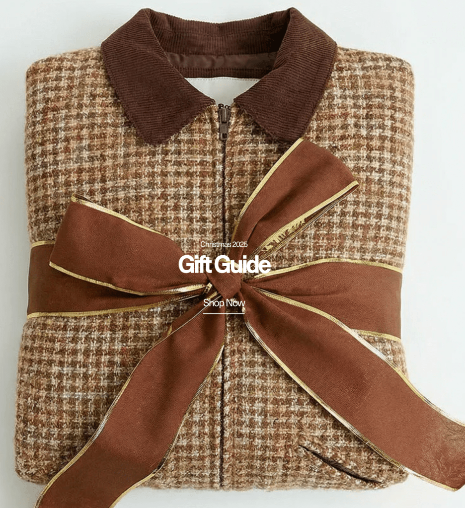 The Nude Project as mentioned earlier is a brand on the rise. The website full of all things holiday spirit. The gift guide feature outerwear with a bows focused on the knitwear pieces photographed. The teddy bear fleeces, suede mini bags and the graphic tee connect with a soft aesthetic.