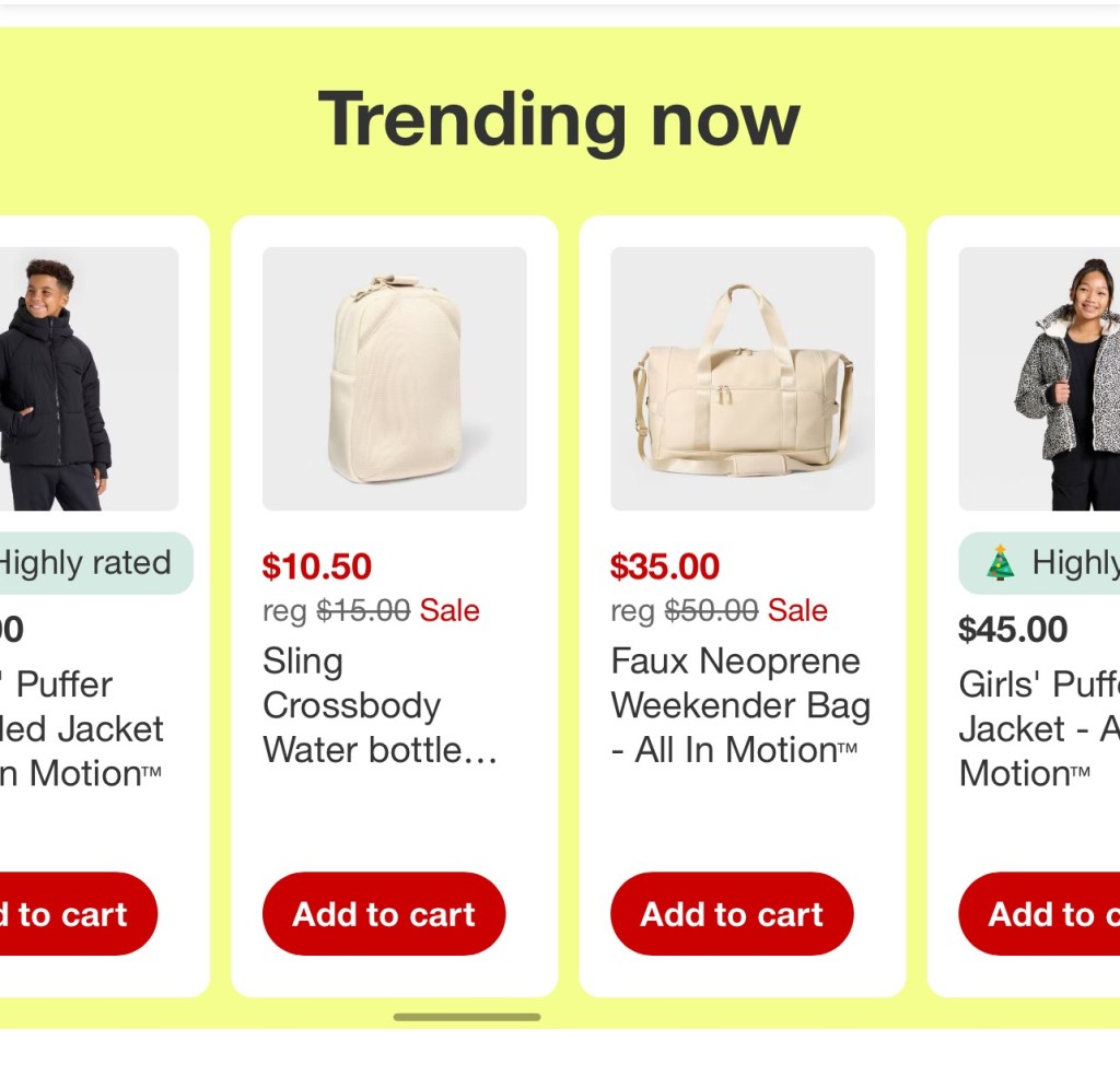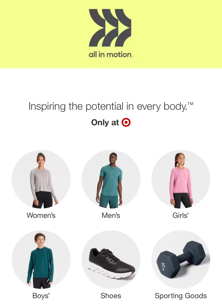 All in Motion a line under Target with activewear for the whole family. I used this specifically for workout bag snowsuit gear to gloves and other sport equipment at home.
