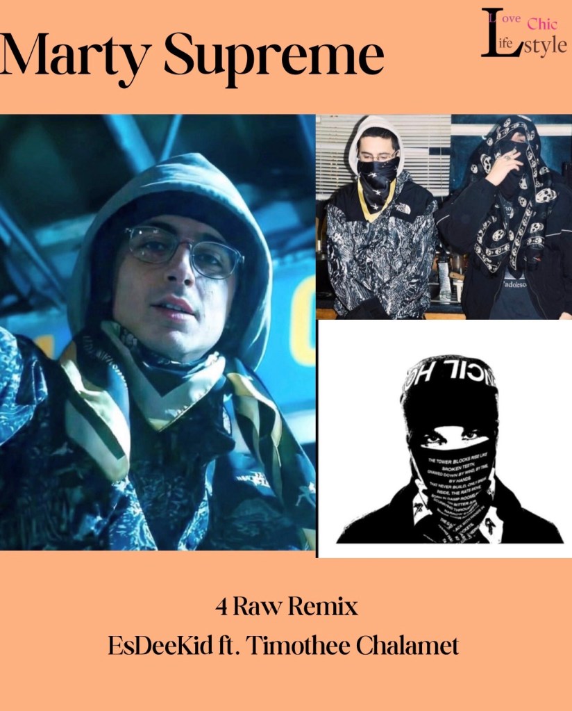 - The mention of Chalamet in the UK rapper EsDeeKid video for remix of 4Raws mentions in a music video.