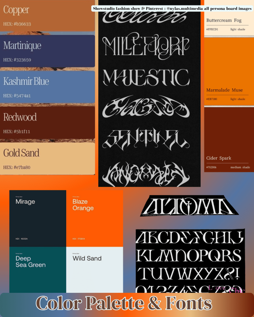 When it came to typography as someone loving the style of curves and focusing on the anatomy of type in typography. The first typeface that came to me was black letter which is a gothic letter. The color palette for the background always reflects the collection.