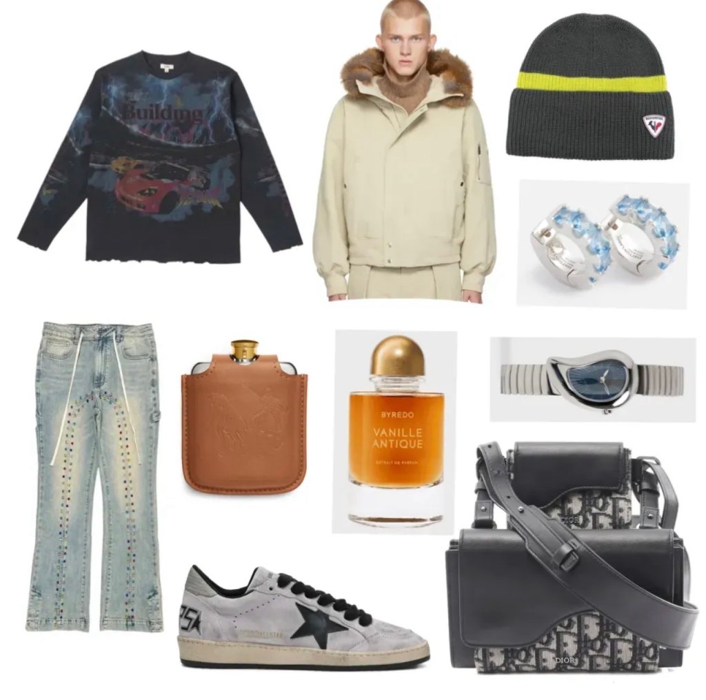This is one of the archival piece that detsils most notable to mention of the Golden Goose sneakers, Dior bag, Byredo frangrance.