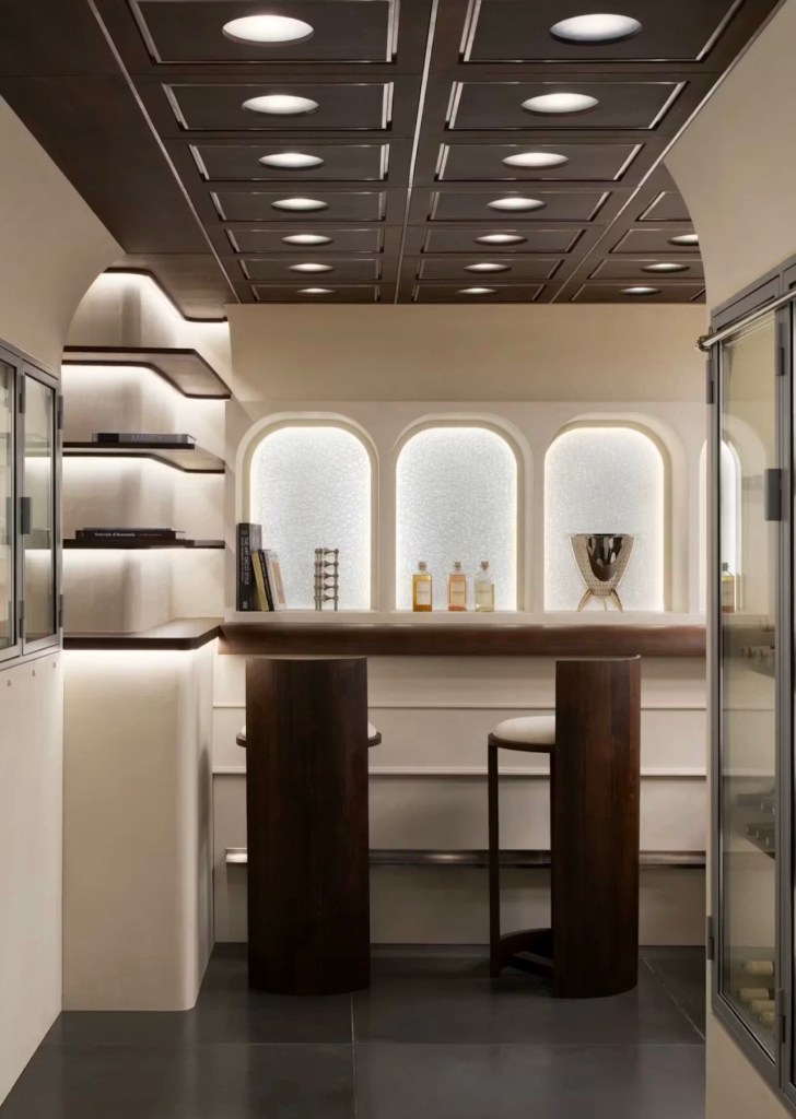 The apartment is in Saint-Germain-des-Prés. It has 2 bedrooms and 2 kitchens for gathering, with a kitchen versus a standard day-to-day kitchen. Interior architect Pauline Leprince and Marc Newson. According to Highsnobiety Leprince added