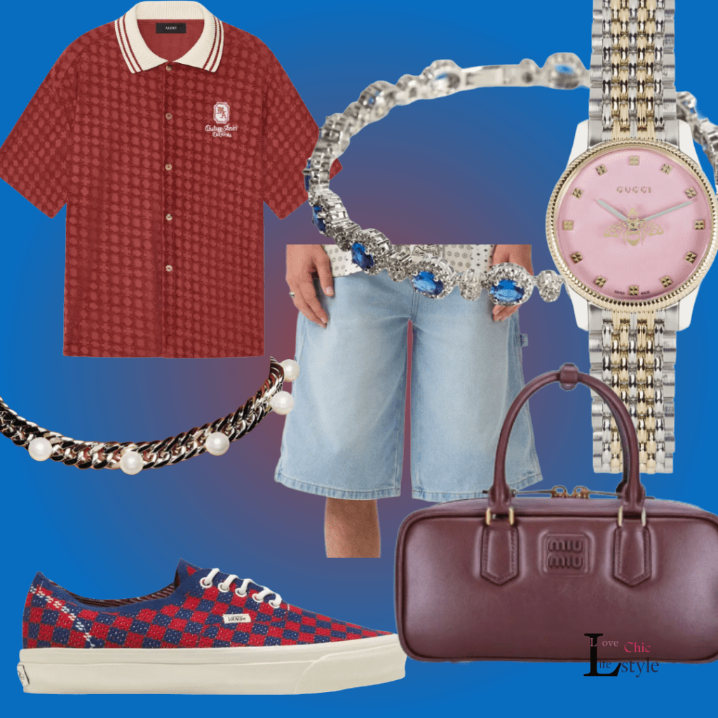 The dissolving of labels is what makes this ‘Woven in Checkered & pearls’ the mix of jewelry and accessories that are seen as feminine. The contrast of this was in the Miumiu medium arcadia tote design like a long pencil case it has a classic clutch type of feel. It was essential to add the mixed media of Midnight Factory one of my favorite jewelry styling lines for the Pearl curb chain chocker. As the rise of wearing Chanel pearls on men became a thing from Asap Rocky to ambassadors such as Kendrick Lamar it was the continuous start of blurring the lines of feminine versus masculine.